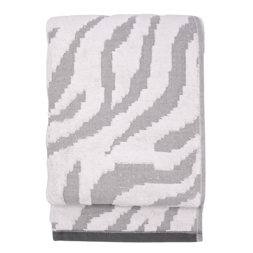 Tässä ylellisessä jacquardpyyhkeessä on hauska seeprakuvio. Pyyhe täyttää eurooppalaisen Oekotex 100 -standardin, mikä takaa, että tämän tuotteen valmistuksessa ei ole käytetty haitallisia väriaineita tai kemikaaleja.