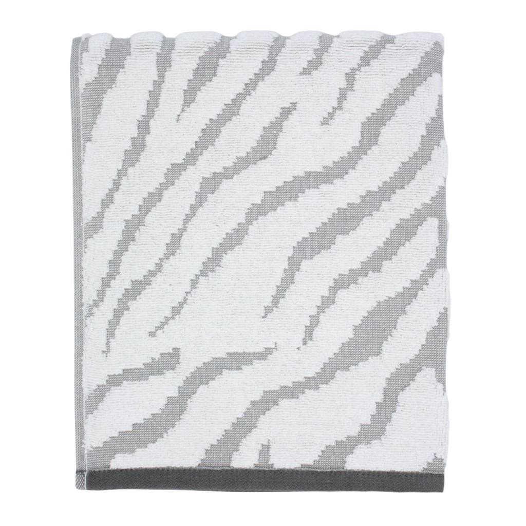 Tässä ylellisessä jacquardpyyhkeessä on hauska seeprakuvio. Pyyhe täyttää eurooppalaisen Oekotex 100 -standardin, mikä takaa, että tämän tuotteen valmistuksessa ei ole käytetty haitallisia väriaineita tai kemikaaleja.
