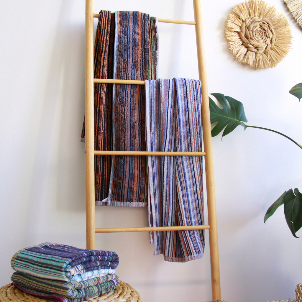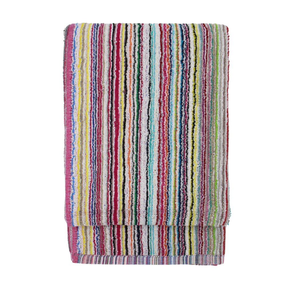 Näissä ympäristöystävällisissä, hauskoissa ja värikkäissä pyyhkeissä on sekoitus kierrätettyjä lankoja, joten jokainen pyyhe on ainutlaatuinen ja värit voivat poiketa hieman kuvassa näkyvästä. Pyyhkeet täyttävät eurooppalaisen Oekotex 100 -standardin, mikä takaa, ettei haitallisia väriaineita ole käytetty.