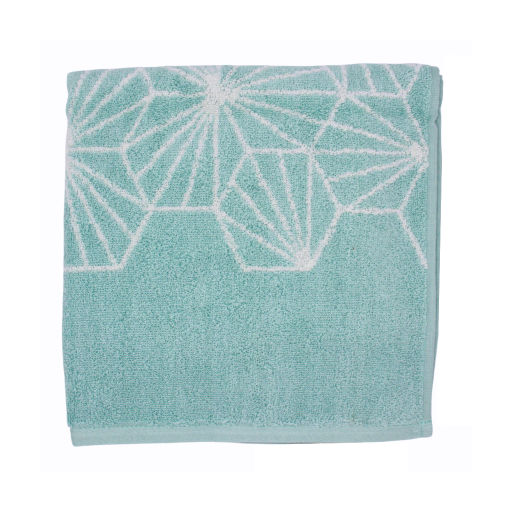 Tämä jacquardpyyhe, joissa on houkutteleva geometrinen muotoilu, tuo raikkaan ja nykyaikaisen ilmeen jokaiseen kylpyhuoneeseen. Pyyhe täyttää eurooppalaisen Oekotex 100 -standardin, mikä takaa, että tämän tuotteen valmistuksessa ei ole käytetty haitallisia väriaineita tai kemikaaleja.