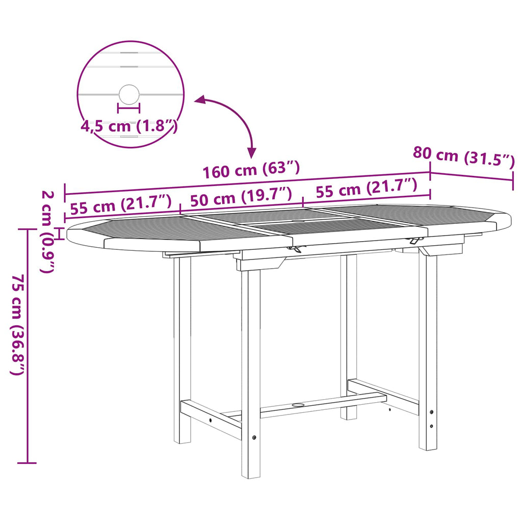 Monipuolinen ulkokäyttöön: Erityisesti puutarhoihin ja terasseille suunniteltu tämä dining-setti on ihanteellinen ulkoelämiseen. Sen suuret mitat tarjoavat mukavasti tilaa kuudelle hengelle, täydellinen viikonlopun kokoontumisiin tai illallisille.