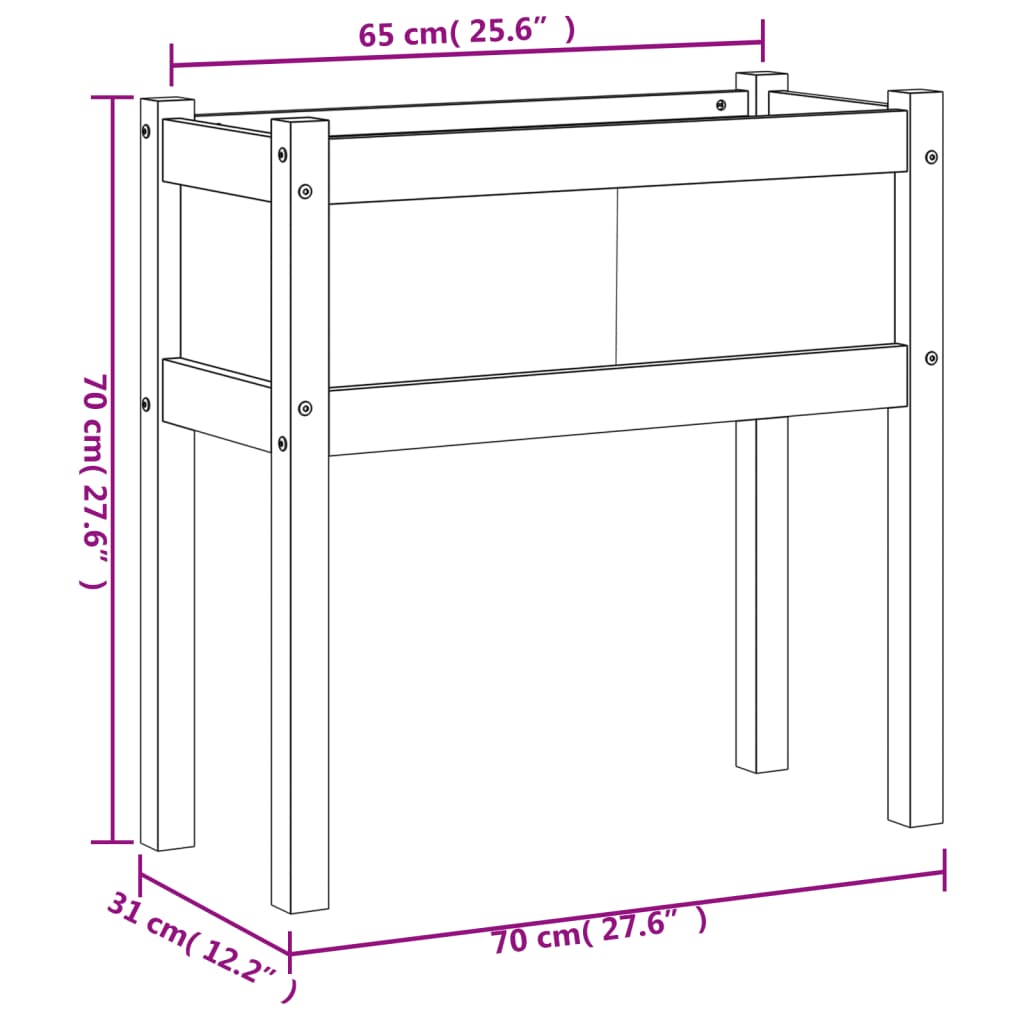 - Kukkalaatikon mitat: 70 x 31 x 24,5 cm (L x S x K)